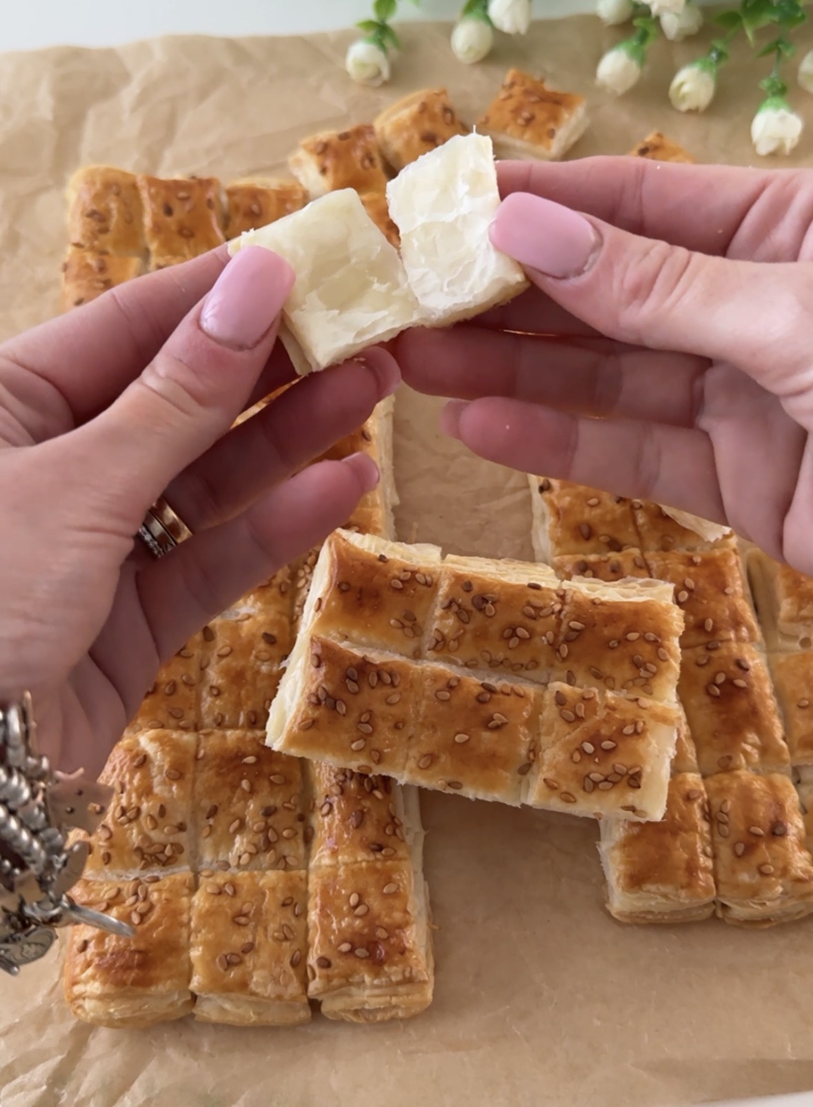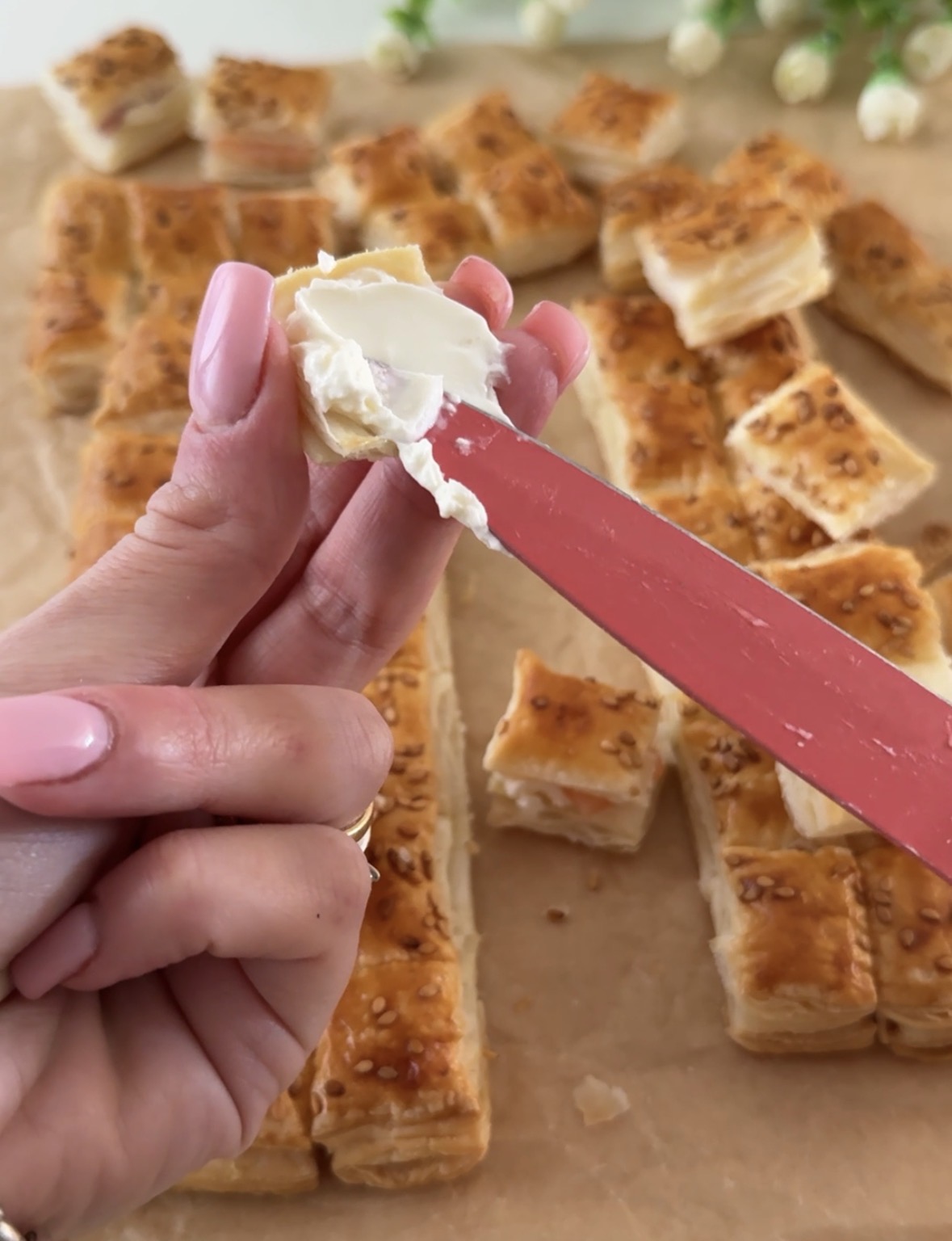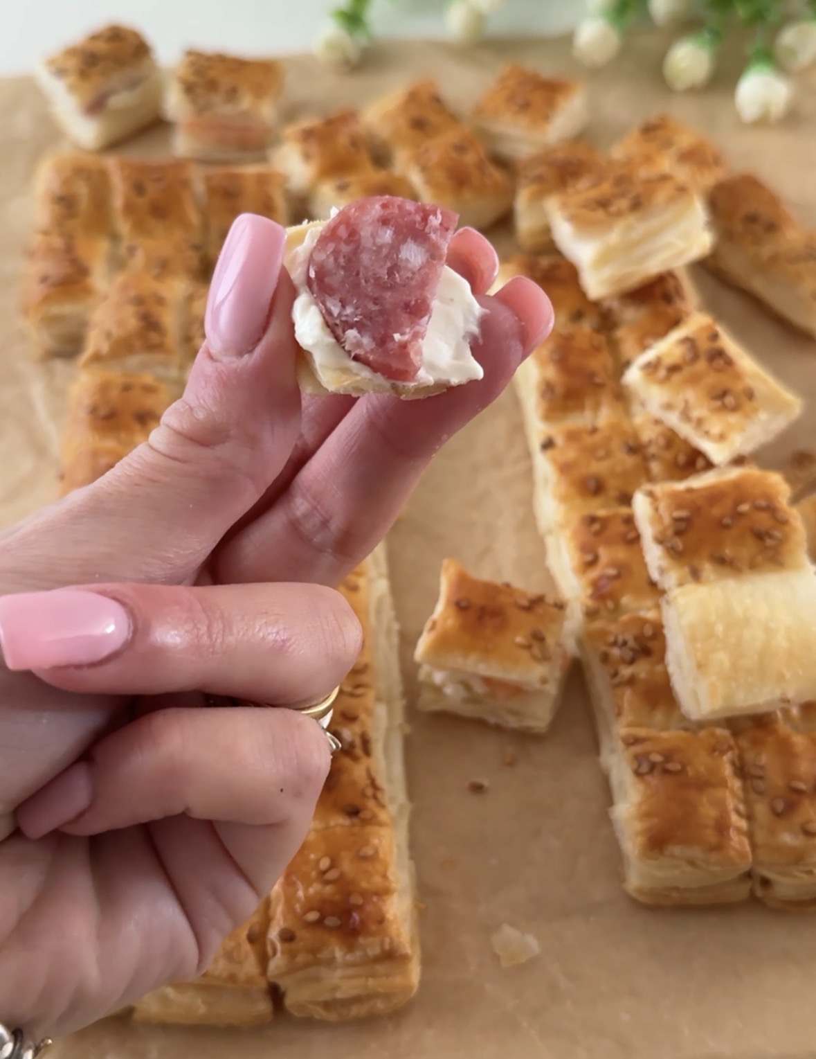 Realizzate in questo modo tutti i bocconcini di sfoglia ed eccoli pronti da servire!