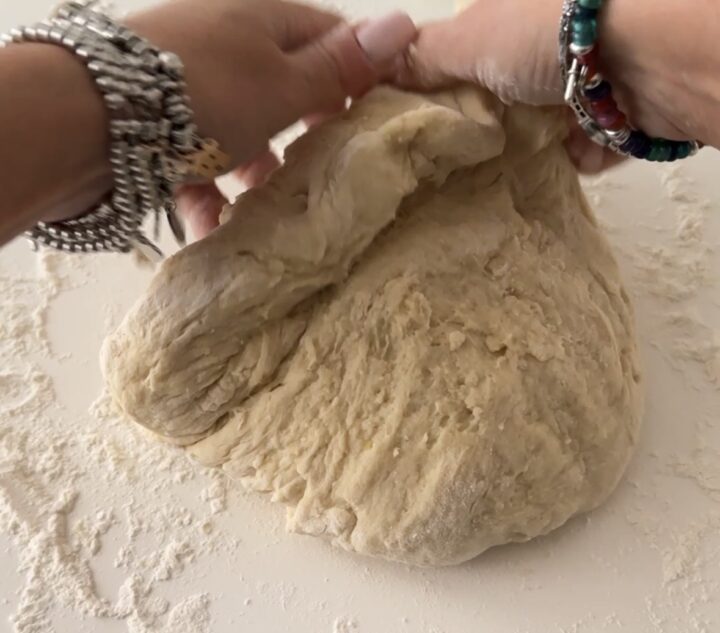 Trasferite l’impasto su un piano di lavoro infarinato e formate un panetto liscio ed omogeneo, rimettetelo nella ciotola, coprite con un canovaccio e lasciatelo lievitare per un paio di ore.