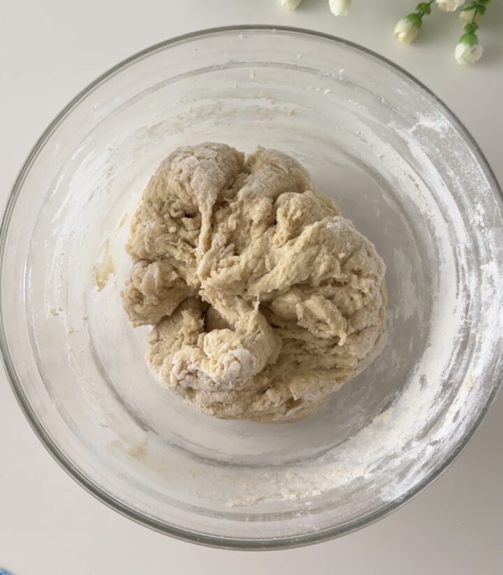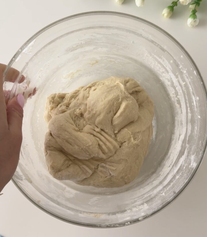 Lavorate impasto su un piano, formate un bel panetto, mettetelo in ciotola, coprite con della pellicola e fatelo riposare per 30 minuti.