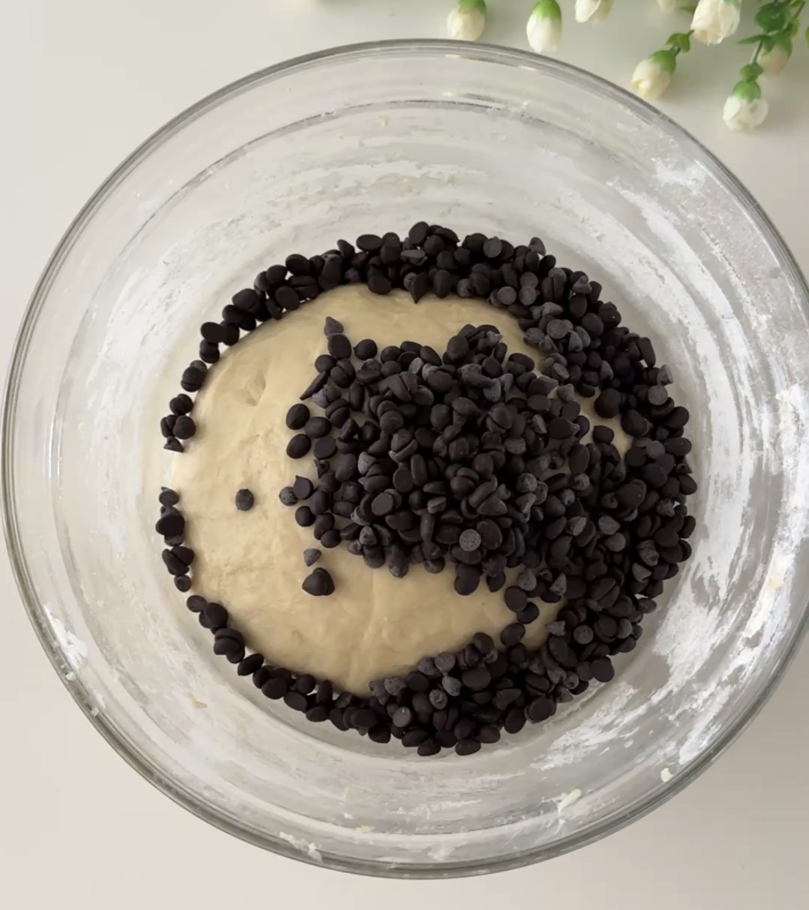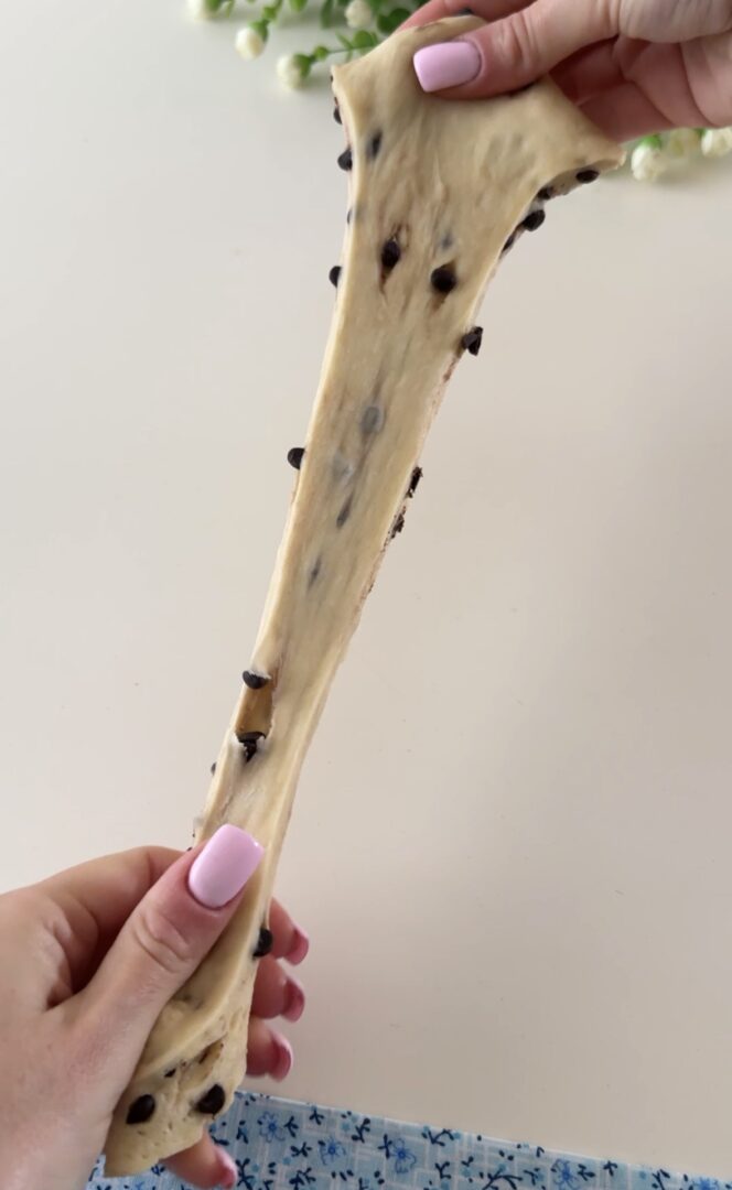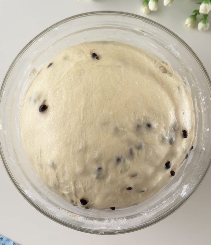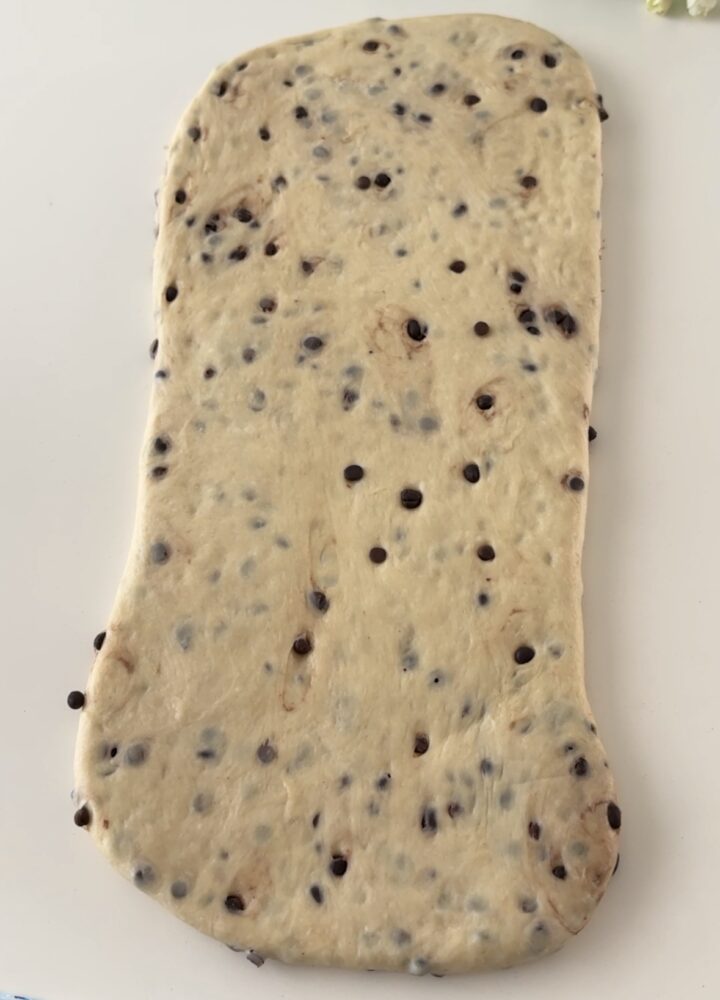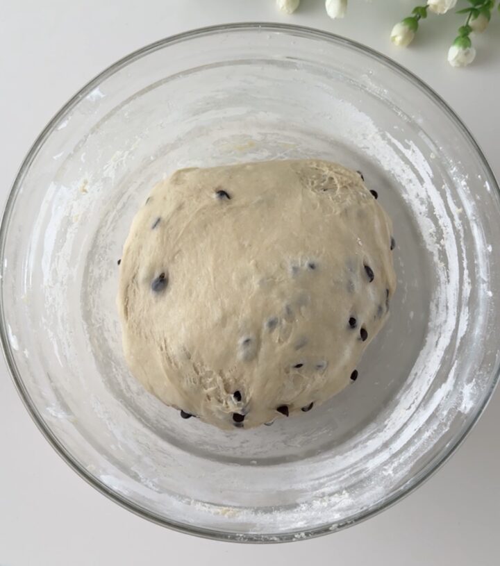 A questo punto, unite le gocce di cioccolato e fatele amalgamare all’impasto, lasciatelo lievitare per un paio di ore.
