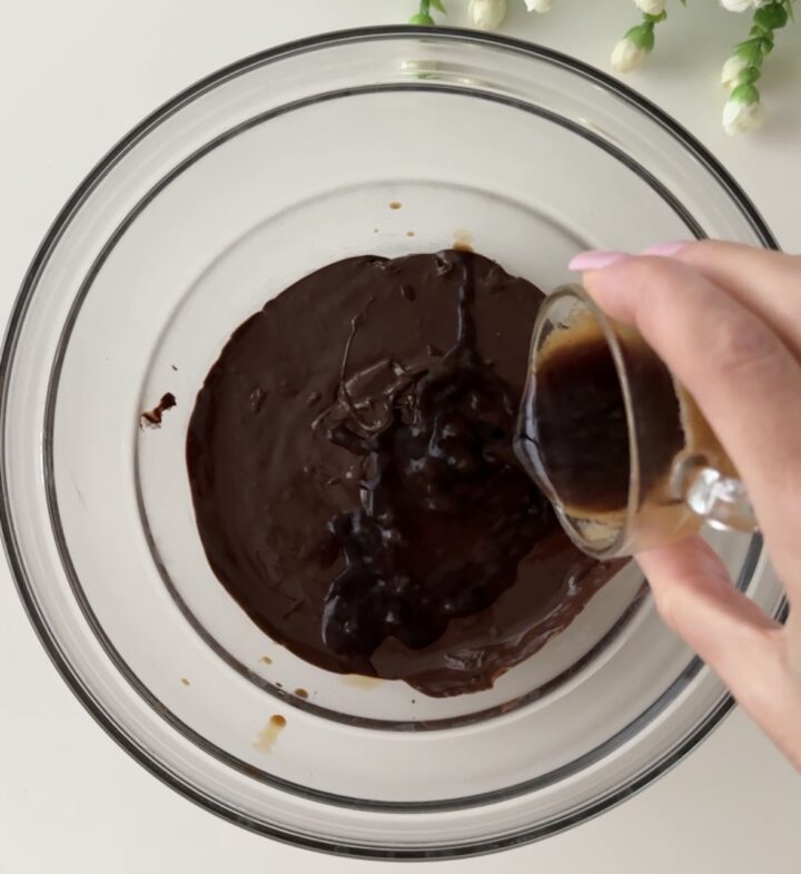 Il croccante al caffè e cioccolato è molto semplice e velocissimo da preparare, per prima cosa sciogliete il cioccolato fondente a bagnomaria o al microonde e preparate il caffè con la macchinetta o con la caffettiera, 25 g equivalgono ad una tazzina, ma pesatelo per esserne certi.
