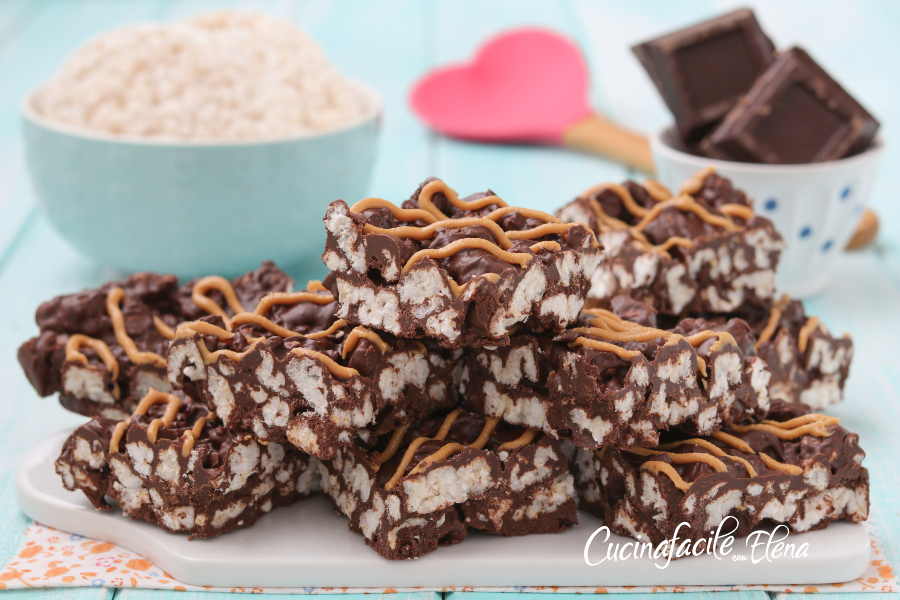 I dolcetti gallette e cioccolato con burro di arachidi sono dei dolci senza cottura veloci e golosissimi. Avevo ancora del cioccolato fondente delle uova di Pasqua da consumare, una confezione di gallette di riso aperta e un po’ di burro d’arachidi, così, ho pensato di fare un goloso dolcetto, utilizzando questi 3 ingredienti. I dolcetti gallette e cioccolato sono troppo buoni, si preparano in soli 5 minuti e sono ideali a colazione, merenda o come snack, davvero irresistibili!