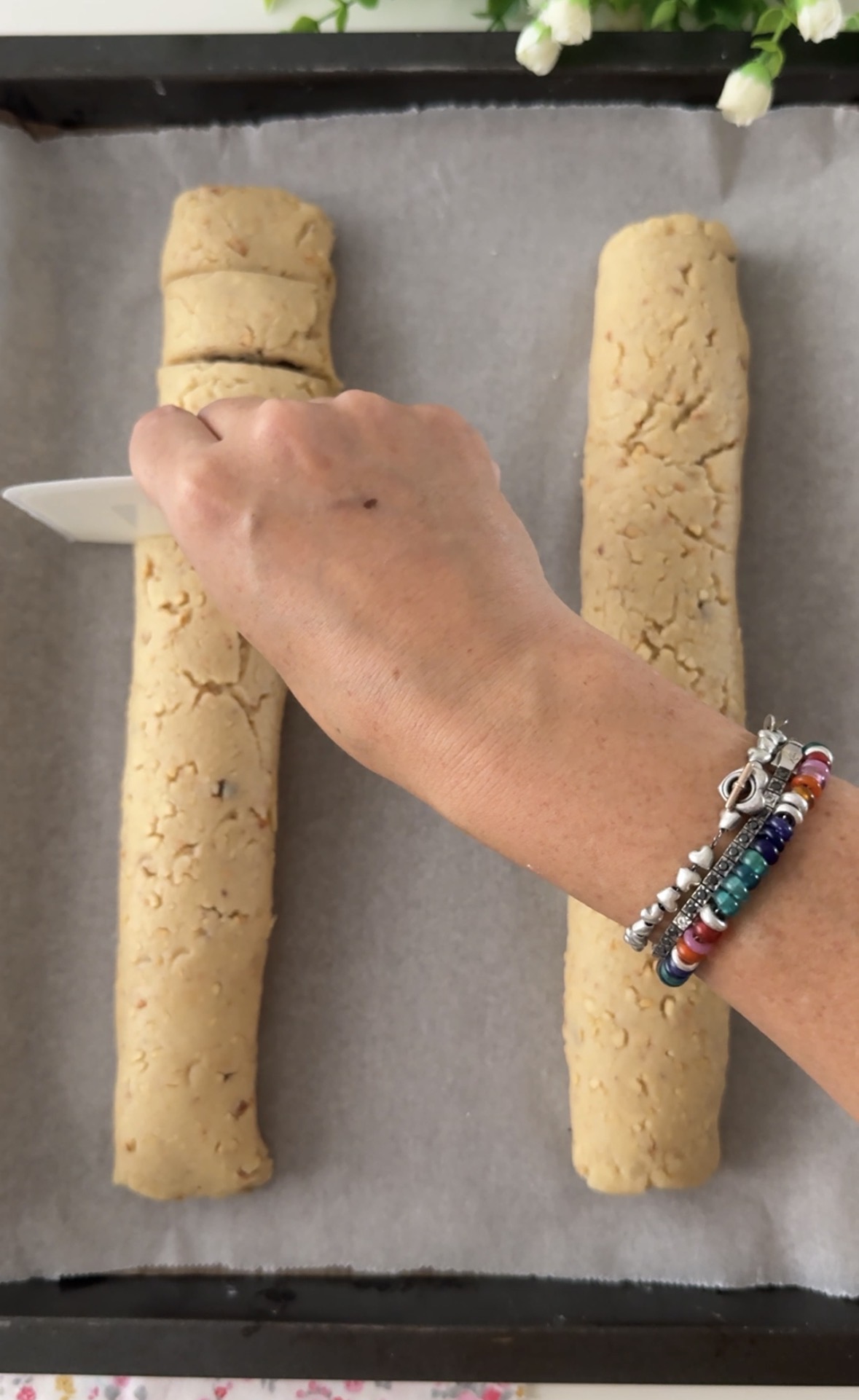 A cottura ultimata, sfornate i filoncini alla Nutella, guarniteli con dello zucchero a velo e staccate i vari biscottini.