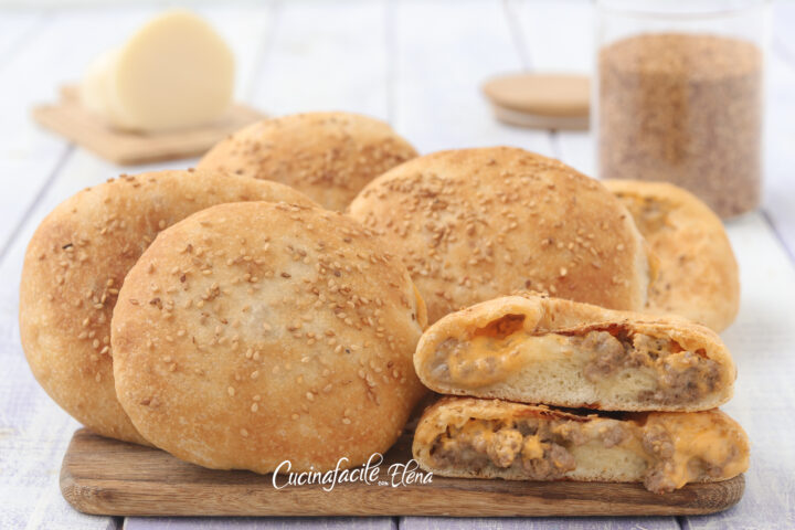 Le focaccine burger sono una ricetta veloce e super golosa, degli hamburger furbissimi e super pratici da mangiare. Avevo visto un video arabo in cui veniva preparata una ricetta simile e mi ha incuriosito così tanto che ho voluto assolutamente provarlo, personalizzandolo, ovviamente, a modo mio, in modo molto più semplice, rapido e sfizioso. Inutile dire che queste focaccine burger sono andate a ruba, si preparano in pochissimi minuti e via in forno, sono soffici, buonissime e dal ripieno filante e cremoso, perfette come antipasto, secondo o piatto unico, magari con un contorno di insalata o patate o verdure al forno o patatine fritte, ideali anche per un pranzo fuori casa, una gita fuori porta o una scampagnata, sono super versatili e troppo golose!