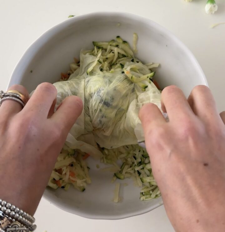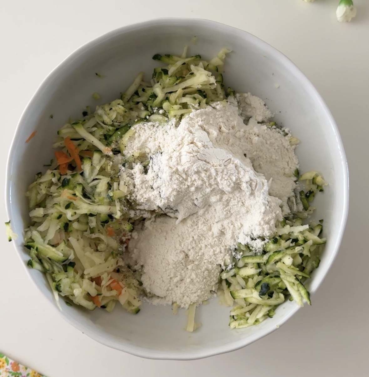 Tamponate le verdure con della carta da cucina per eliminare i liquidi in eccesso e aggiungete sale, pepe nero, spezie a piacere (io ho messo un mix di erbe aromatiche) e farina 00, fate amalgamare per bene tutti gli ingredienti.