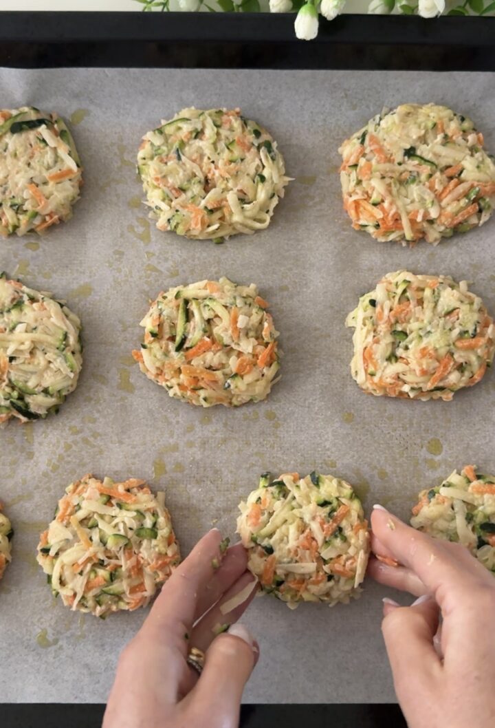 Le frittelle di verdure al forno sono una ricetta facile, veloce e buonissima. Adoro le ricette semplici e gustose con le verdure, ecco quindi che ho messo insieme patate, zucchine e carote e ho preparato delle deliziose frittelline che non sono fritte ma cotte in forno (o in friggitrice ad aria) con pochissimo olio. Saporite, croccanti e gustose, queste frittelle di verdure al forno sono perfette come contorno, antipasto o secondo piatto vegetariano e anche vegano, le fate in meno di10 minuti senza uova e piaceranno tanto anche ai più piccini, le mie bimbe le hanno adorate!