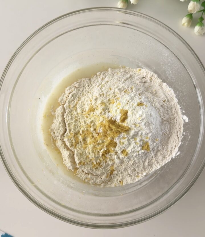 Aggiungete un pizzico di sale, la farina, il lievito, la scorza grattugiata di limone e formate un composto morbido ed omogeneo, lavoratelo velocemente su un piano di lavoro infarinato e stendetelo con un matterello ad uno spessore di circa mezzo cm.