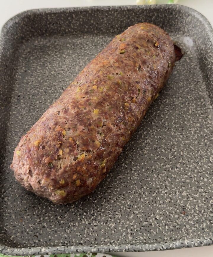 Trascorso il tempo, scartate il polpettone, spruzzatelo con poco olio (o versatene un filo sopra) ed infornatelo per altri 10 minuti, così fuori si formerà una bella crosticina croccante.