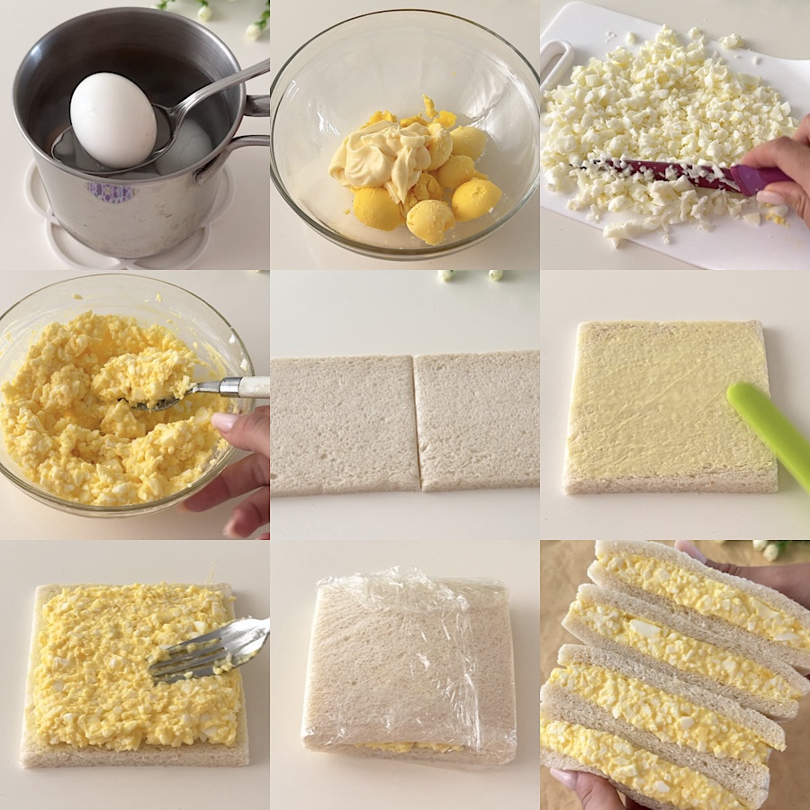 I sandwich giapponesi sono molto semplici e velocissimi da preparare, per prima cosa cuocete le uova fino a farle diventare sode, ma non eccessivamente dure (un trucchetto per avere dei panini perfetti è questo, non stracuocere le uova), portatele ad ebollizione e contate 6/7 minuti.