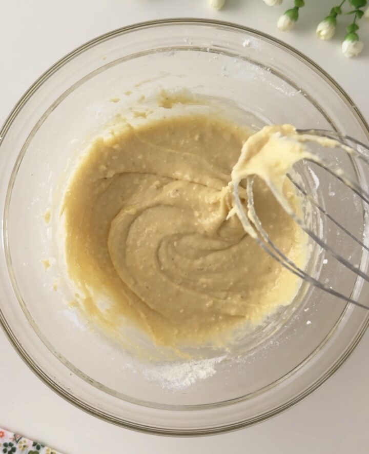 In una ciotola mettete le uova, la farina, il parmigiano grattugiato, un pizzico di pepe nero e mescolate con una frusta a mano o con una forchetta, otterrete una sorta di pastella non molto liquida.