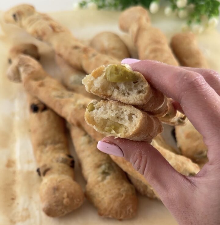 Gli sfilatini di pane alle olive e ai pomodori secchi si conservano a temperatura ambiente per 3/4 giorni. Potete anche farli semplici, senza nulla, o mettere altri ingredienti a piacere. Vi consiglio i pomodori secchi sott’olio piuttosto che quelli secchi, rimangono più morbidi e non rischieranno di bruciarsi. Non consiglio di usare la farina 00 (a meno che non abbia più di 14/15 g di proteine), non è una farina adatta ai lievitati. Potete aumentare o diminuire la quantità di lievito, in funzione del tempo di lievitazione.