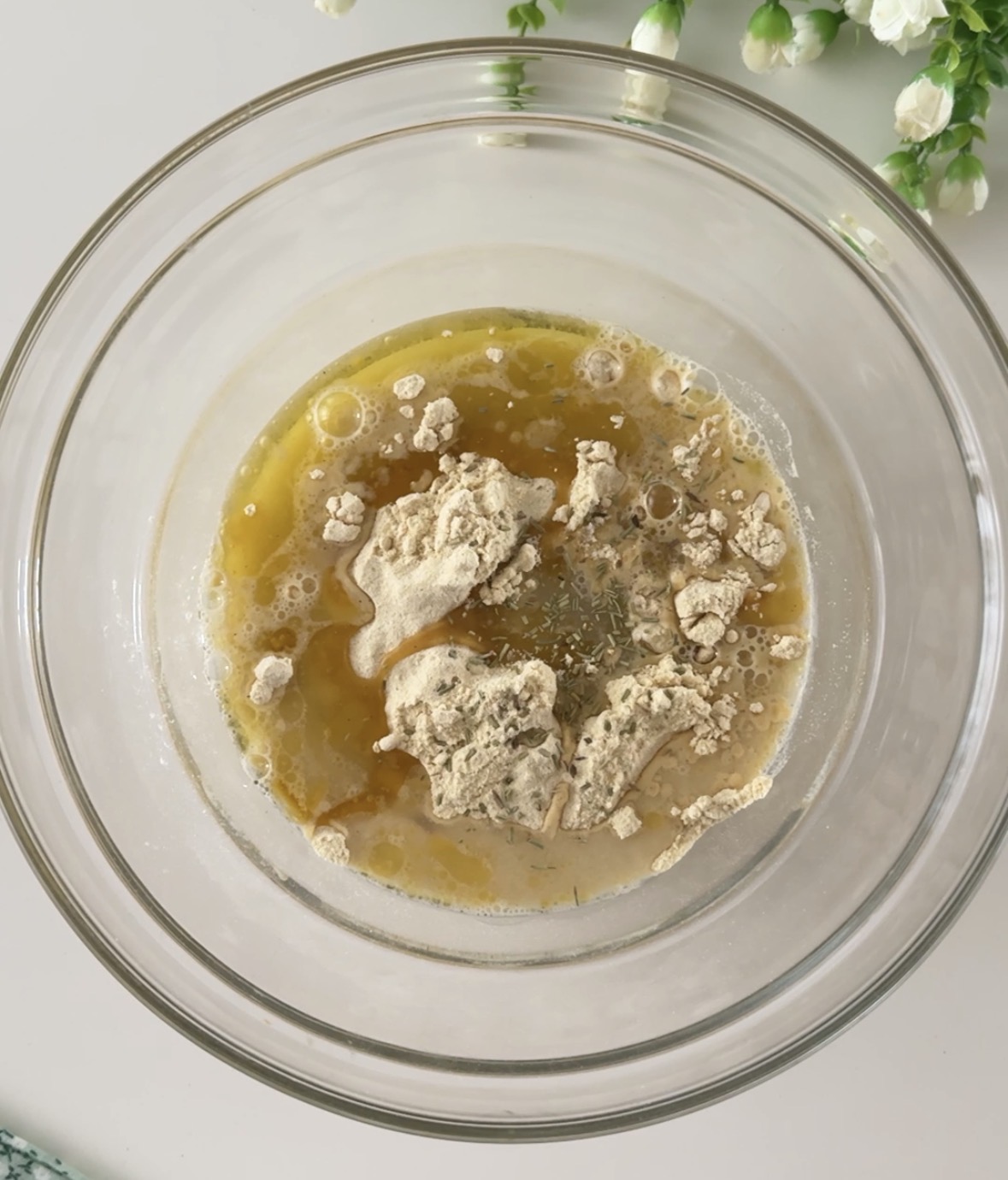 I taralli di ceci sono molto semplici e velocissimi da preparare, per prima cosa mettete in una ciotola la farina di ceci, l’olio extra vergine di oliva, l’acqua a temperatura ambiente, il sale, rosmarino, se volete, o qualche altra spezia a piacere e mescolate tutti gli ingredienti, usando una forchetta.