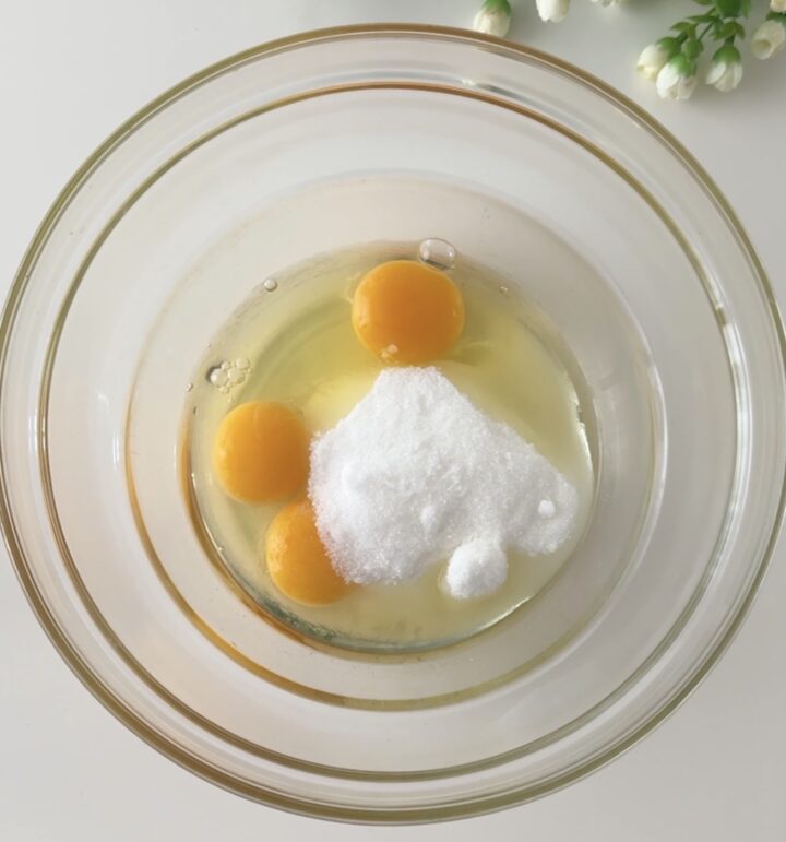 La torta cocco e marmellata è molto semplice e veloce da preparare, per prima cosa montate le uova con lo zucchero e con un pizzico di sale, fino a farle diventare chiare e spumose.
