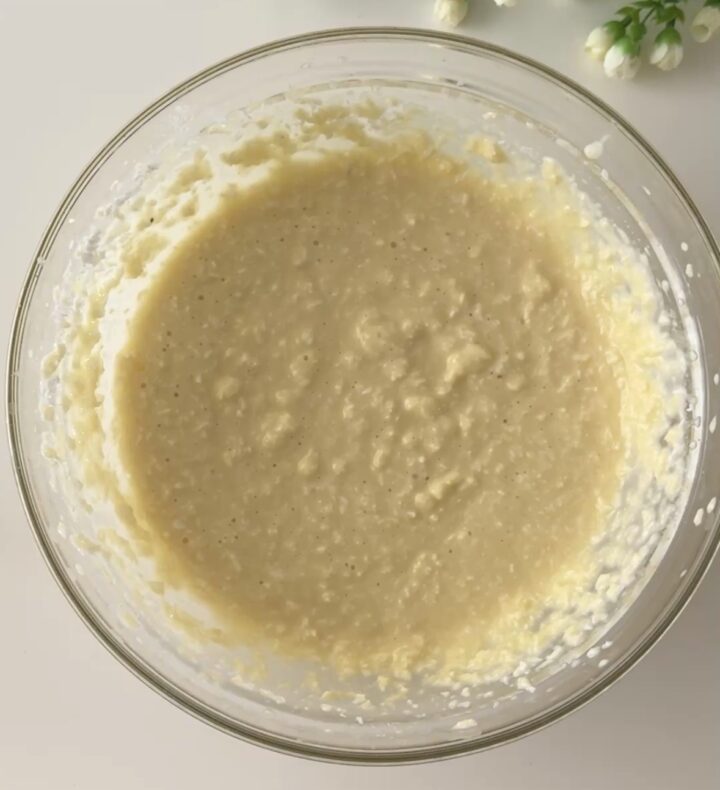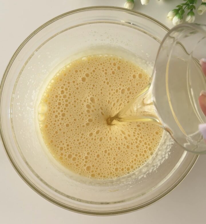 Unite l’olio di semi e mescolate. Aggiungete il latte, la farina, il cocco rapè, il lievito, la vaniglia e fate amalgamare per bene tutti gli ingredienti.