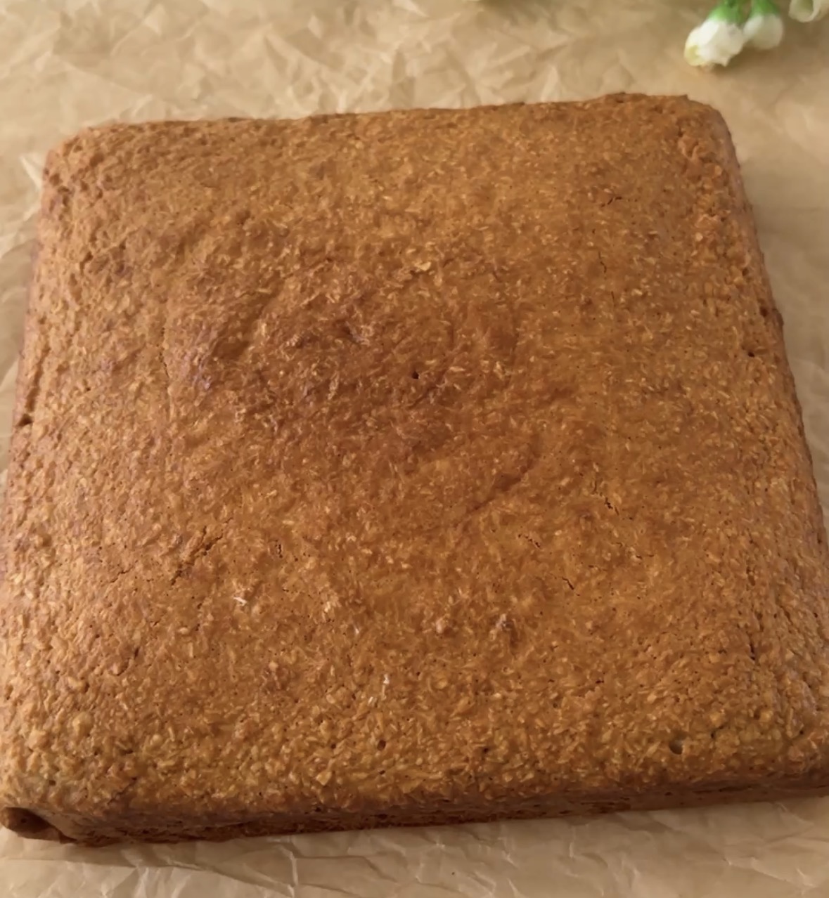 Trasferite l’impasto in una teglia foderata con carta forno e cuocete la torta in forno preriscaldato a 180 gradi per 40 minuti circa, fate la prova stecchino per verificare la cottura.