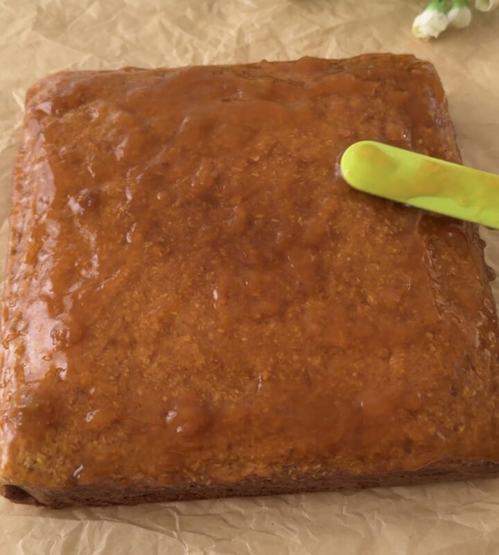 Terminata la cottura, sfornate la torta, spalmate subito sulla superficie un po’ di marmellata del gusto che preferite (io ho messo quella di pesche) e aggiungete un po’ di cocco rapè. Lasciate raffreddare la torta cocco e marmellata ed eccola pronta!