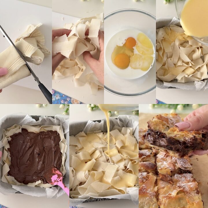 La torta fillo alla Nutella si conserva a temperatura ambiente per 3/4 giorni. Potete personalizzarla con il ripieno che preferite. Se non volete usare il burro potete mettere l’olio di semi, ma con il burro verrà sicuramente più buona, più adatta ad un dolce. Al posto le latte, potete usare una bevanda vegetale.
