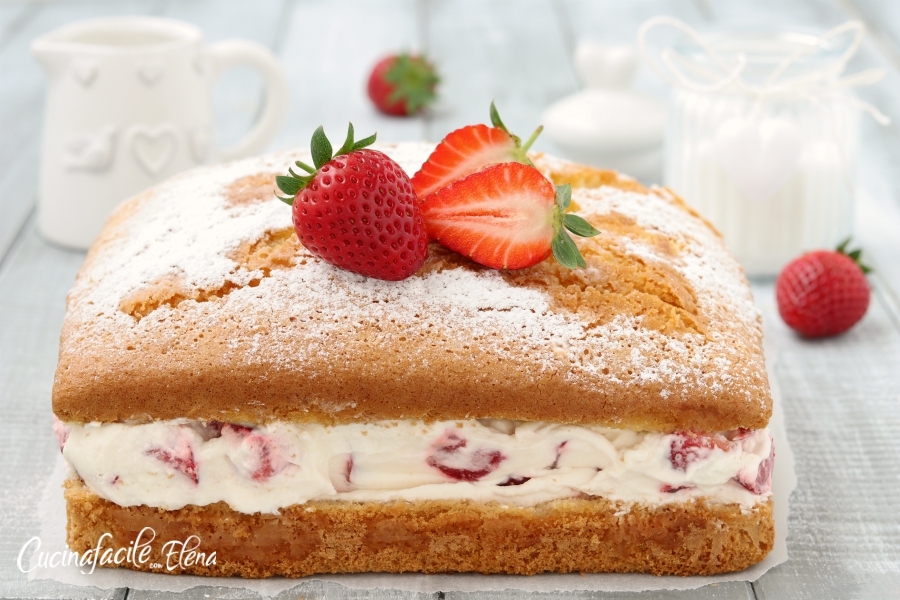 La torta nuvola alle fragole è un dolce davvero spettacolare. Preparate la base in pochissimi minuti senza farina e senza burro, è leggera, morbida e profumata, ha una bagna delicata al limoncello ed un ripieno cremosissimo di panna e fragole. È il dolce che ho preparato per festeggiare il mio compleanno, sono certa che piacerà a tutti, panna e fragole sono un connubio perfetto a cui non si può dire di no, è davvero irresistibile, si scioglie in bocca, poi è anche senza glutine 😀