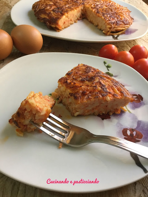 Mescolare bene il tutto e versare in una padella con un filo d’olio…cuocere su entrambi i lati finche’ non si forma una crosticina dorata …la frittata e buonissima calda ma anche fredda…ideale anche per un picnic…