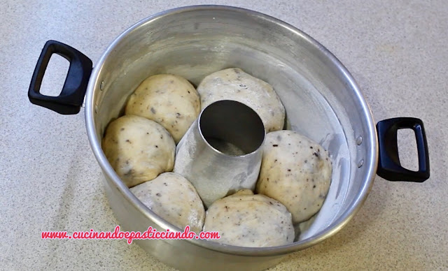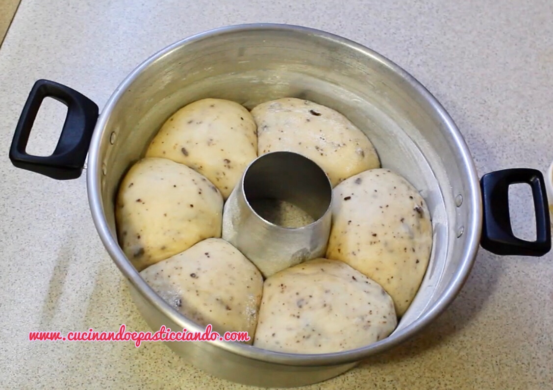 Passato il tempo di lievitazione ho ricavato 6 palline e le ho disposte nel fornetto versilia imburrato e infarinato.Ho fatto riposare altri 30 minuti e poi ho cotto nel fornello piccolo del gas per circa 45 minuti.