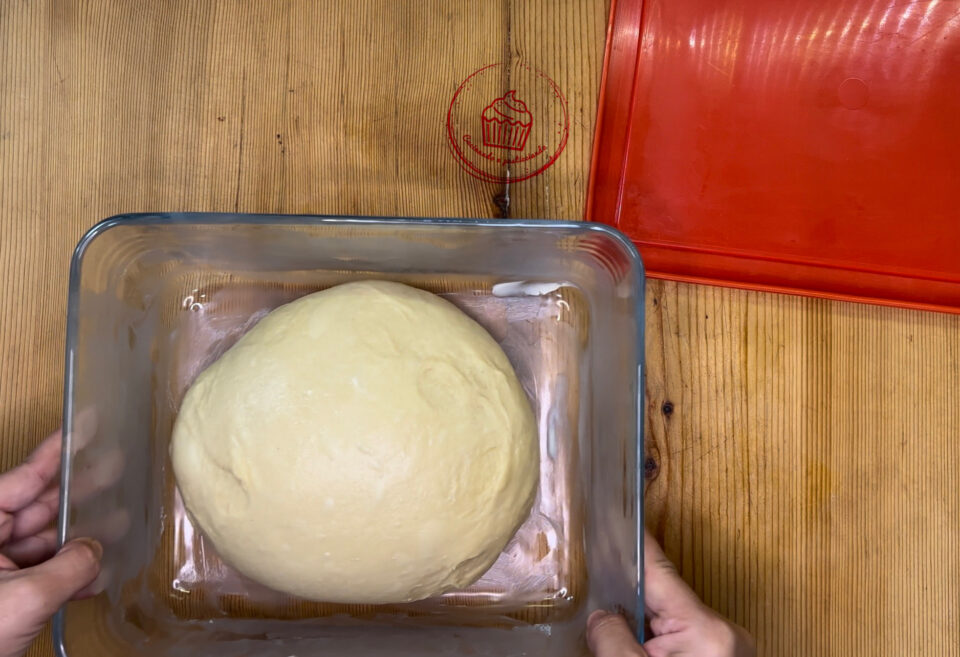 Una volta che l’impasto è abbastanza incordato trasferitelo sulla spianatoia leggermente imburrata fate un giro di pieghe e trasferitelo in un contenitore unto di burro e fatelo lievitare per circa 5 ore.