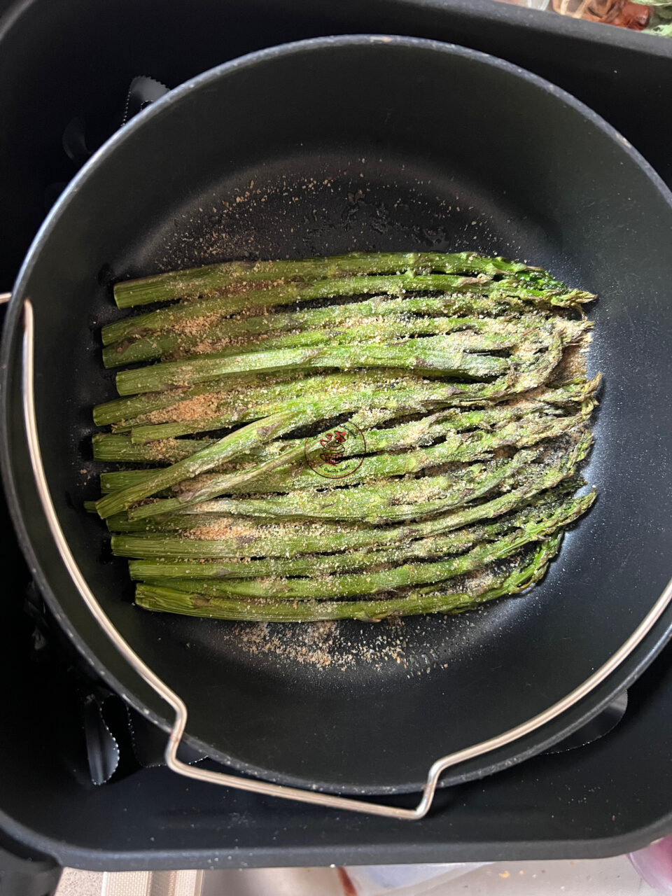 Oggi ho preparato un contorno in 10 minuti. Gli asparagi gratinati cotti in friggitrice ad aria, sono buonissimi, croccanti e una volta assaggiato uno ti vien subito voglia di mangiarne un’altro. Per la cottura potete anche regolarvi. A me piacciono belli croccantini con le punte belle abbrustolite, ma voi potete decidere di cuocerli un pochino meno. Gli asparagi gratinati in friggitrice ad aria sono molto gustosi, e volendo al pangrattato si possono aggiungere spezie e aromi.
