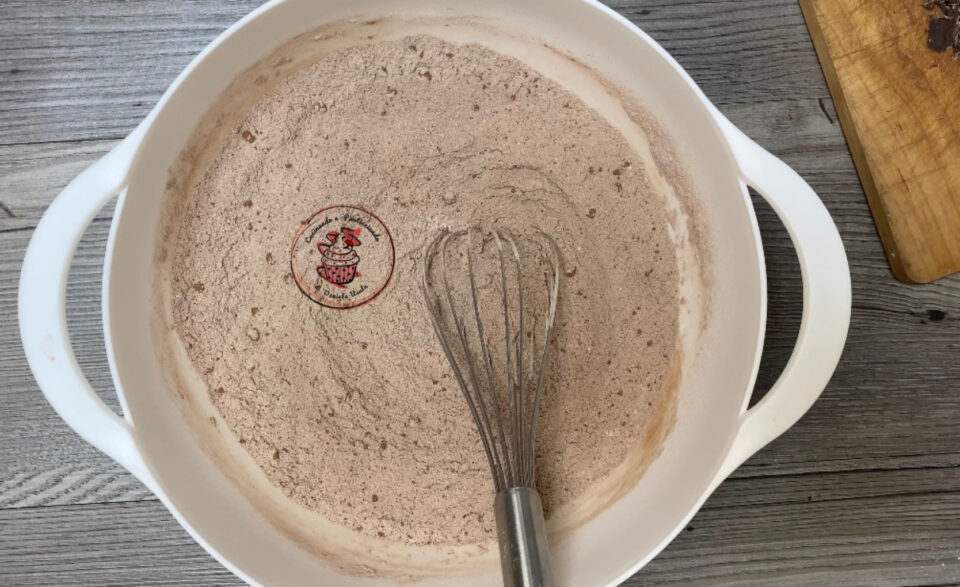 Trasferire in uno stampo oleato e spolverizzato con del cacao amaro. Cuocere per circa 40 minuti a 180°.