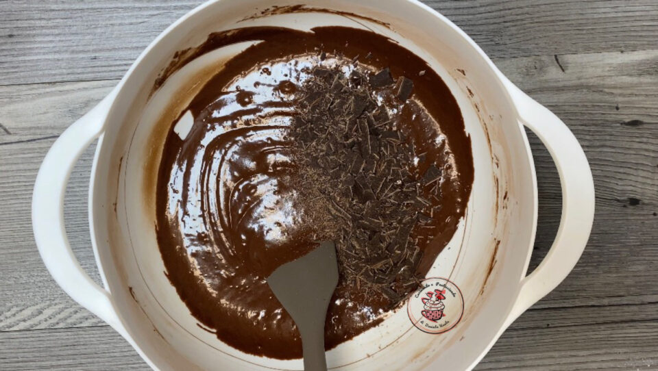 Aggiungere il cioccolato tagliato a coltello.Mescolare ancora.