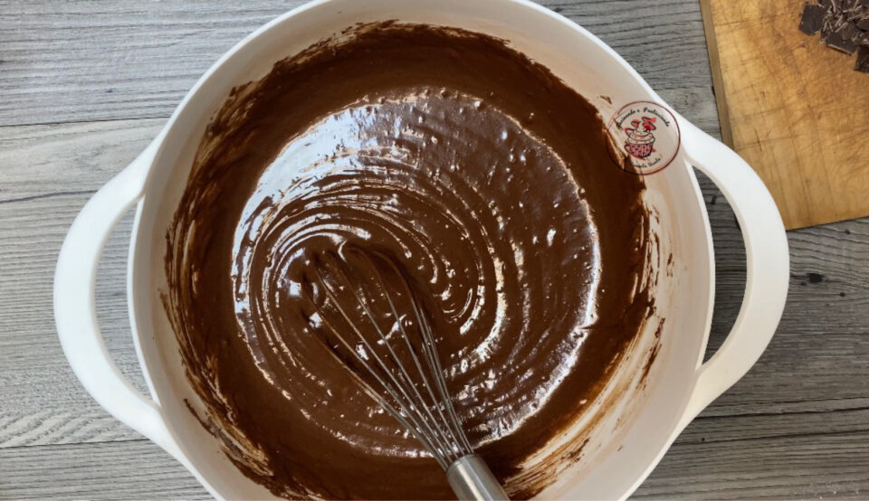 Aggiungere i liquidi e continuare a mescolare finché non ci sono più grumi.