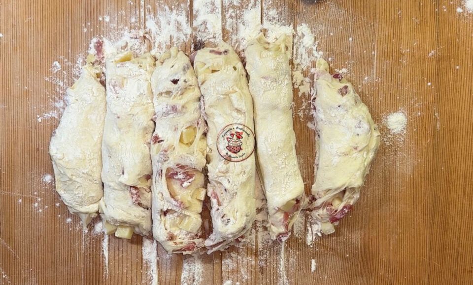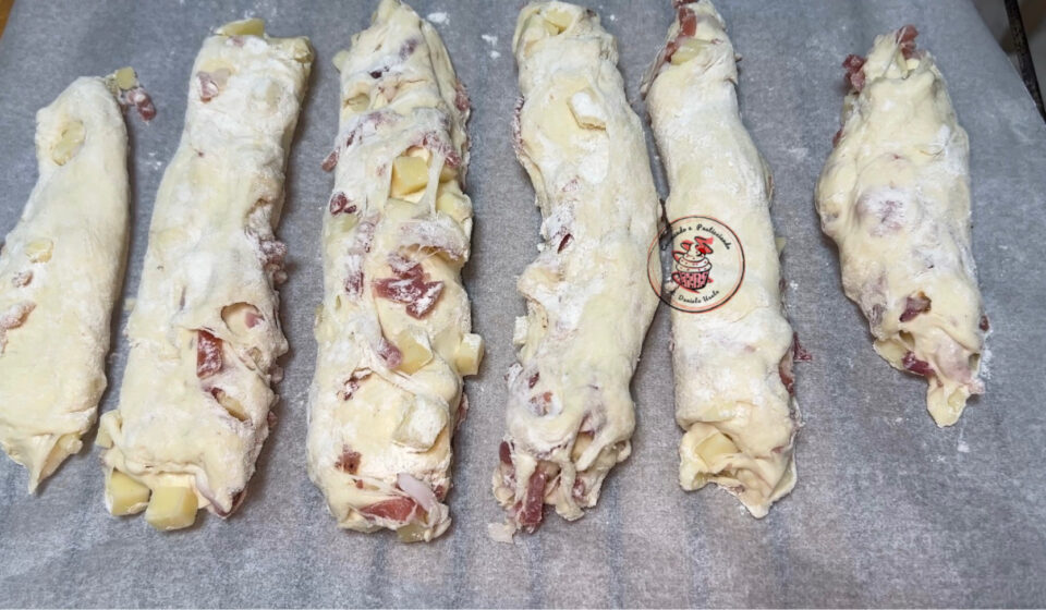 Trasferisci l’impasto di nuovo sulla spianatoia, e con l’aiuto di un tarocco forma i filoncini.