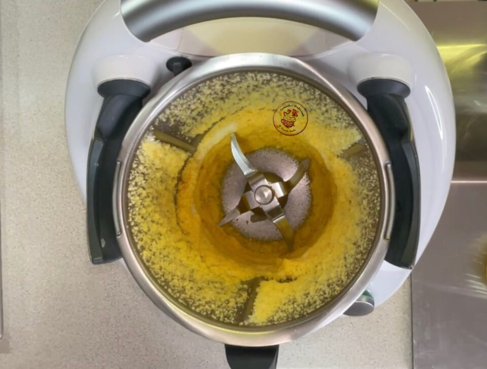 Nel boccale del bimby tritare la scorza dell’arancia con lo zucchero per 10 secondi a velocità 10.