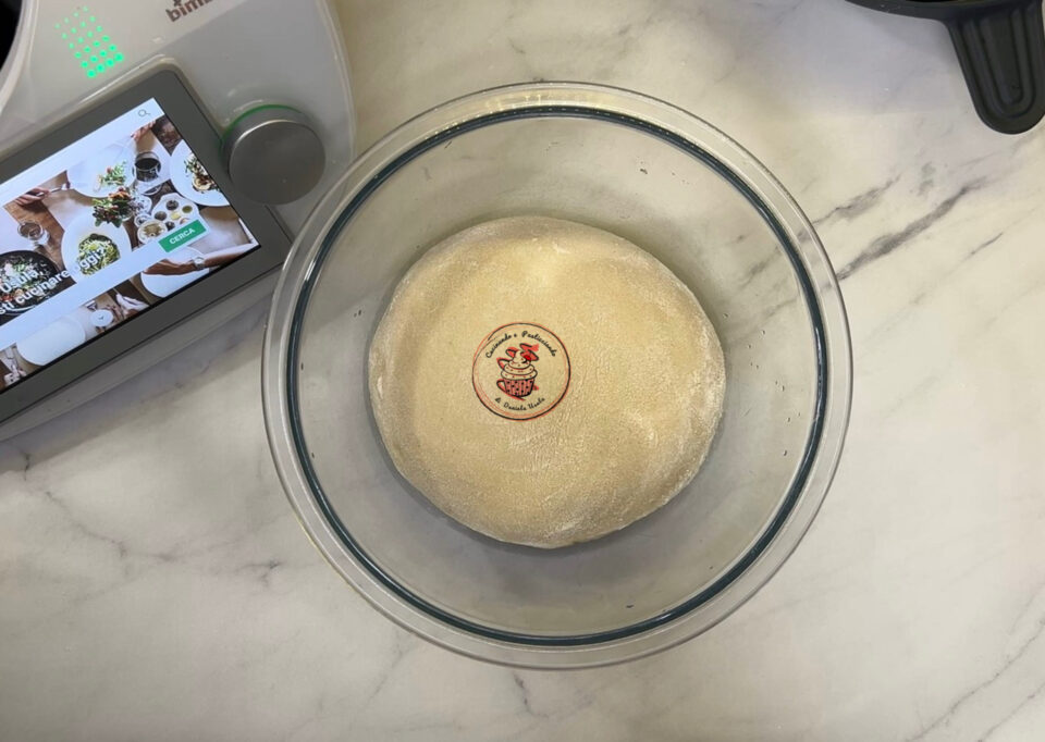 Trasferiamo l’impasto ottenuto su una ciotola, copriamo e facciamo lievitare fino al raddoppio.