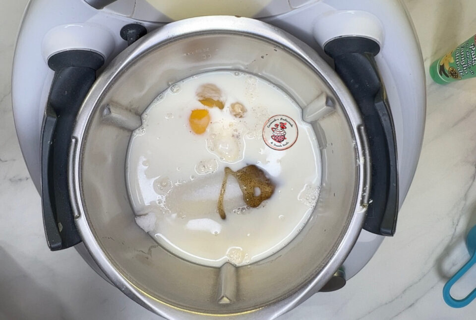 Nel boccale del bimby versiamo la farina, il lievito , lo zucchero, l’uovo, il sale, il latte e la vaniglia.Lavoriamo 5 minuti a velocità spiga.