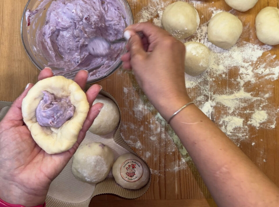 Su ogni pallina mettiamo un po del ripieno e richiudiamo bene.