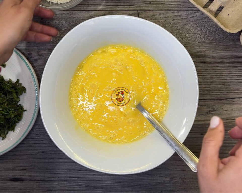 Aggiungere le uova e sbattere bene con una forchetta.