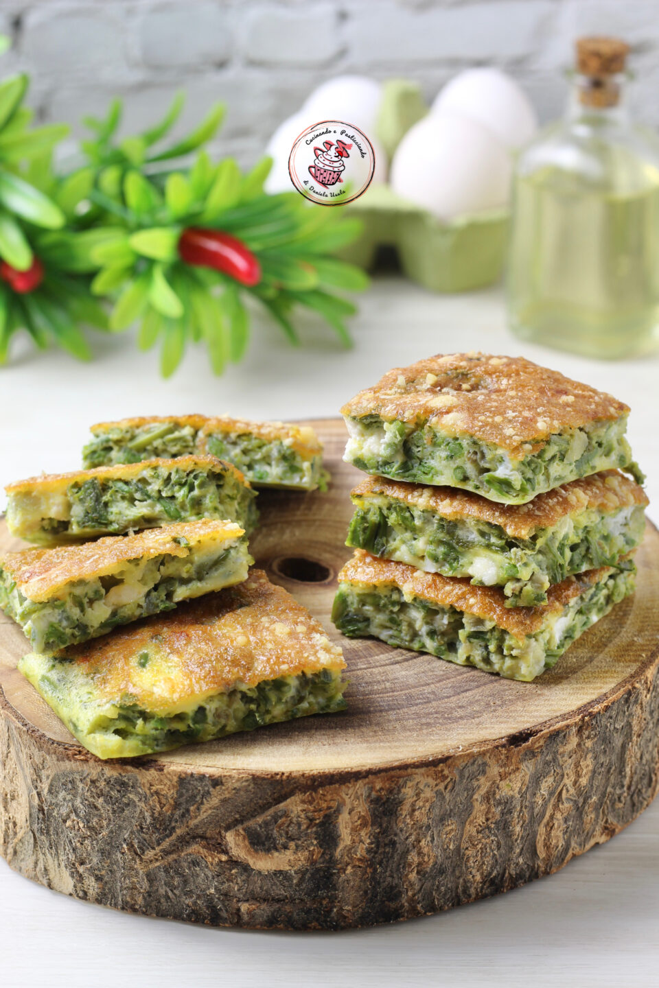 In questa versione l’ho cotta in friggitrice ad aria, ottenendo una frittata soffice dentro e leggermente dorata fuori. Una volta pronta l’ho tagliata a cubotti, ideali da servire come antipasto, aperitivo o per arricchire un buffet.