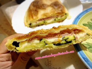 Calzone di pasta sfoglia con zucchine, prosciutto cotto e provola