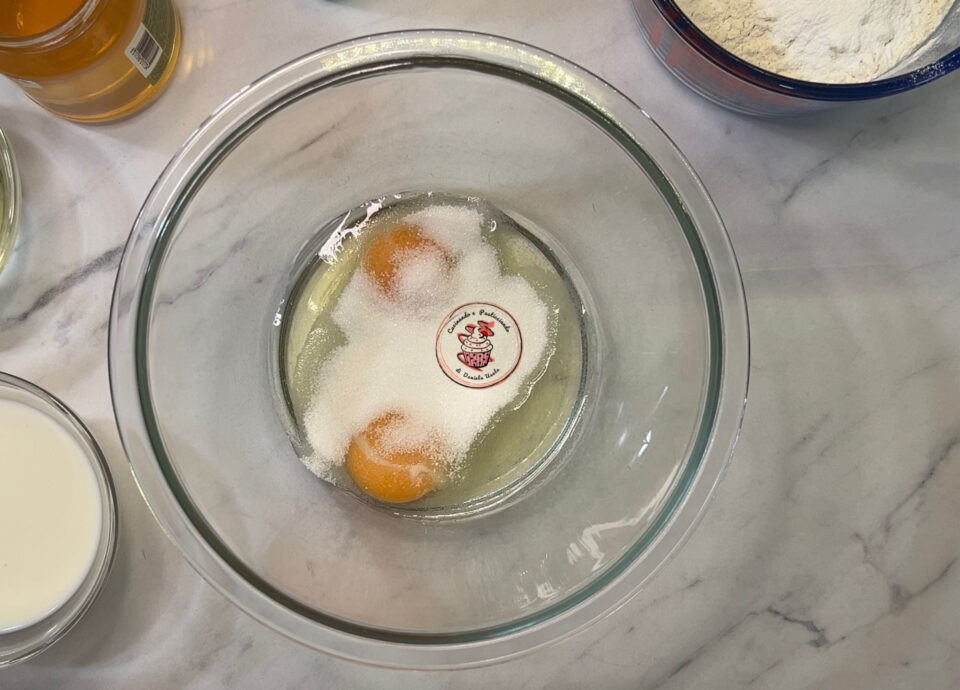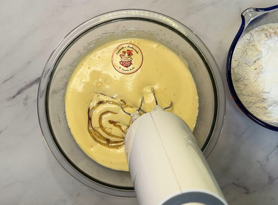Aggiungere il latte, l’olio,il miele e la vaniglia .Continuare a montare con le fruste per qualche secondo .