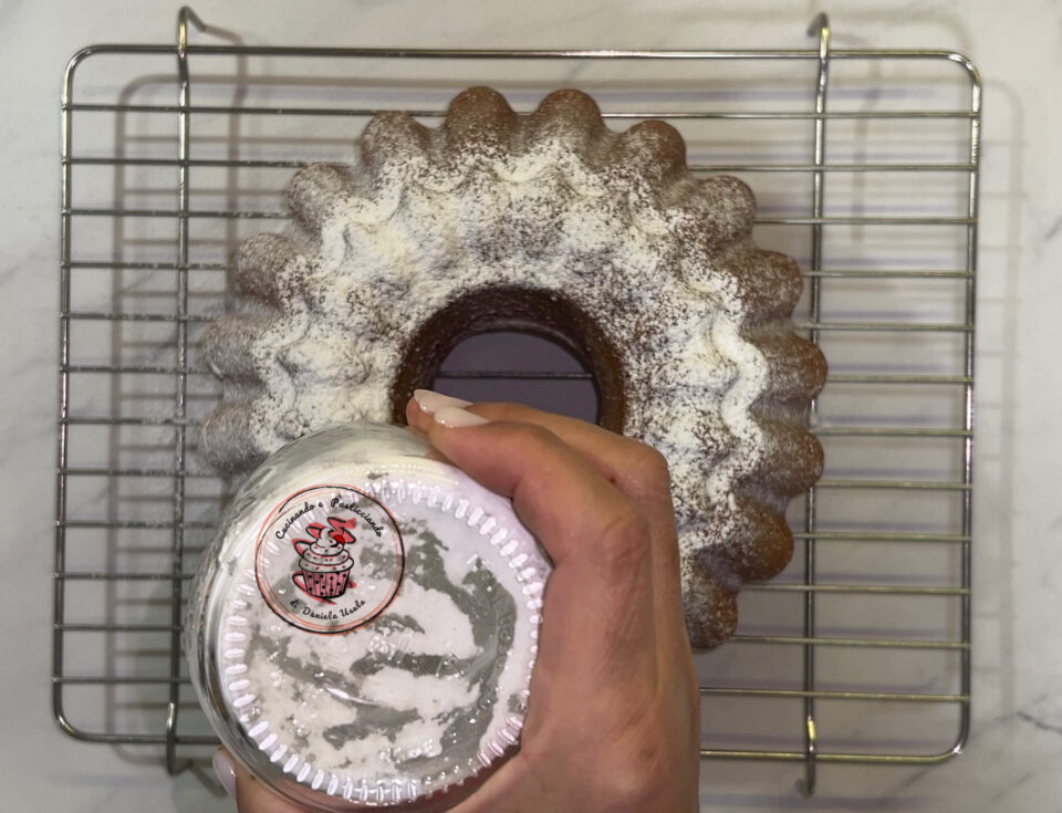 Trasferire su una gratella, far raffreddare e spolverizzare con zucchero a velo.