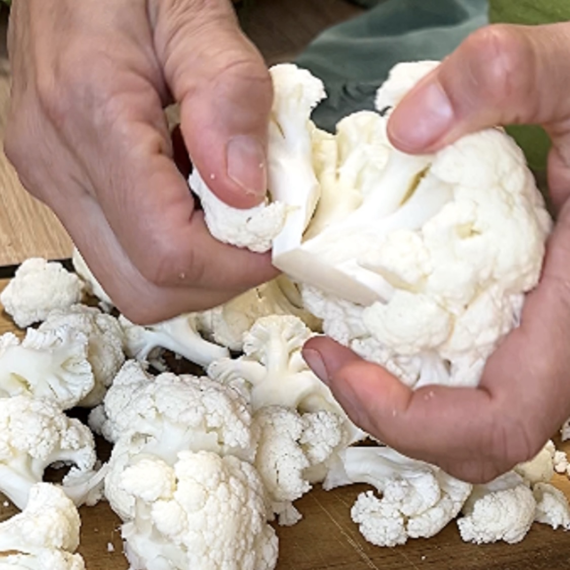 Pulisci il cavolfiore dal gambo più duro e prendi le cimette cercando di tagliare pezzi piccoli e omogenei