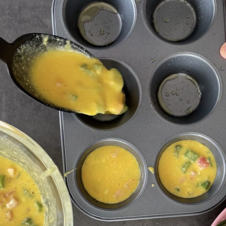 Versate il composto per i 2/3 della capienza della teglia dei muffin io con queste dosi ho realizzato 6 frittatine.