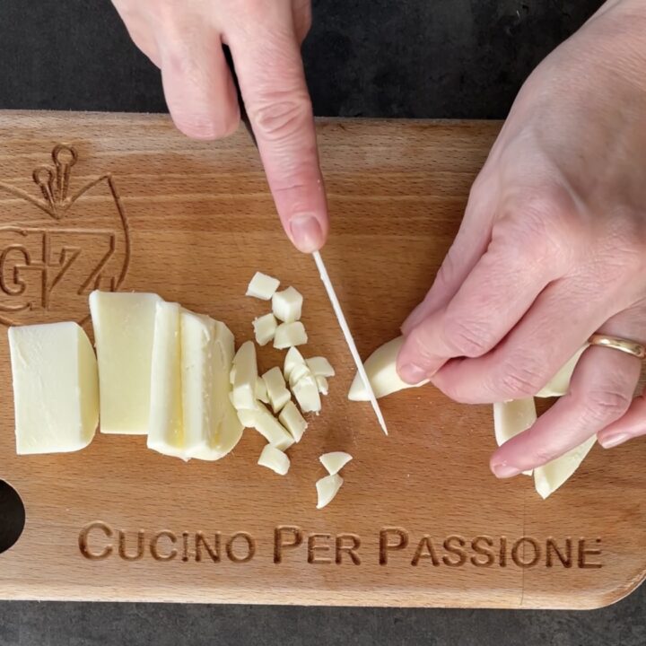 e i cubetti di formaggio.Accendete il forno statico a 180C° e quando sarà caldo infornate e fate cuocere per 15 minuti, vedrete che le frittata si gonfieranno parecchio, poi una volta che toglierete la teglia dal forno si sgonfieranno da sole.