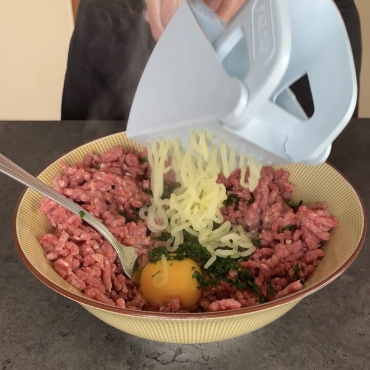 Versate la carne macinata in una terrina, lavoratela con una forchetta in modo da sgranarla, aggiungete l’uovo,