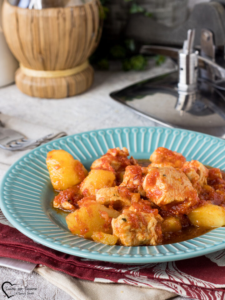 Servite lo Spezzatino di pollo in pentola a pressione ben caldo