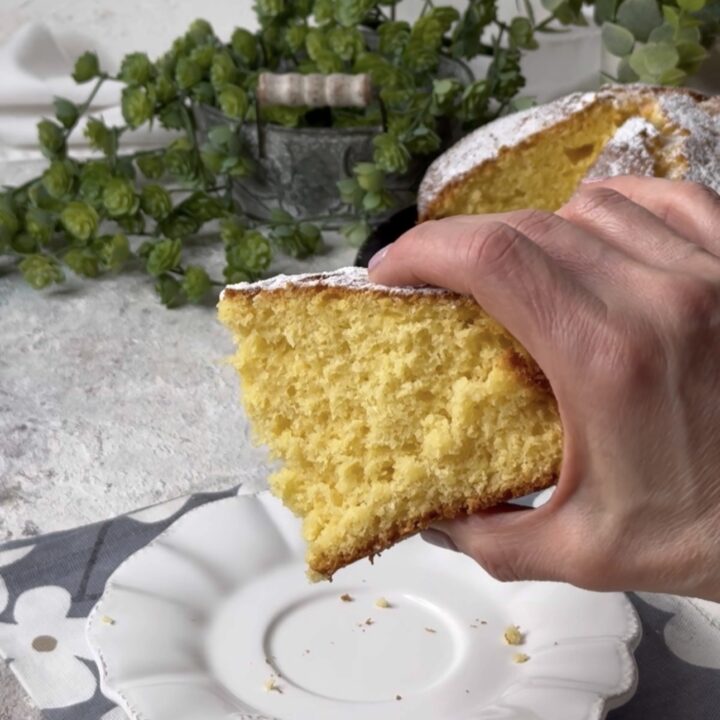 Quando la torta sarà cotta sfornatela, fatela raffreddare e poi toglietela dalla teglia e spolveratela con lo zucchero a velo.