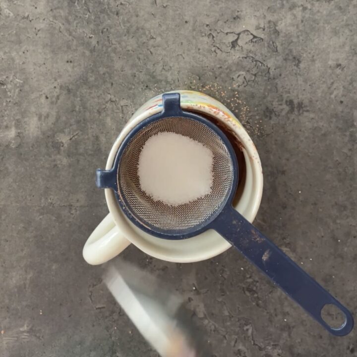 Sarebbe meglio che gli ingredienti secchi li setacciaste, io metto un passino piccolo sulla tazza e li aggiungo direttamente, unite il cacao amaro, m
