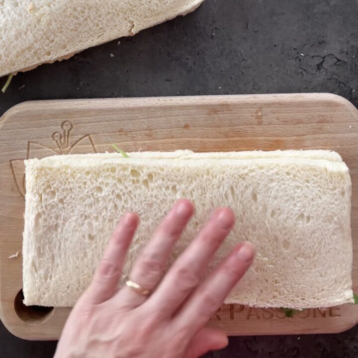 Aggiungete una fetta di pane per tramezzini e premete leggermente in modo da farla aderire