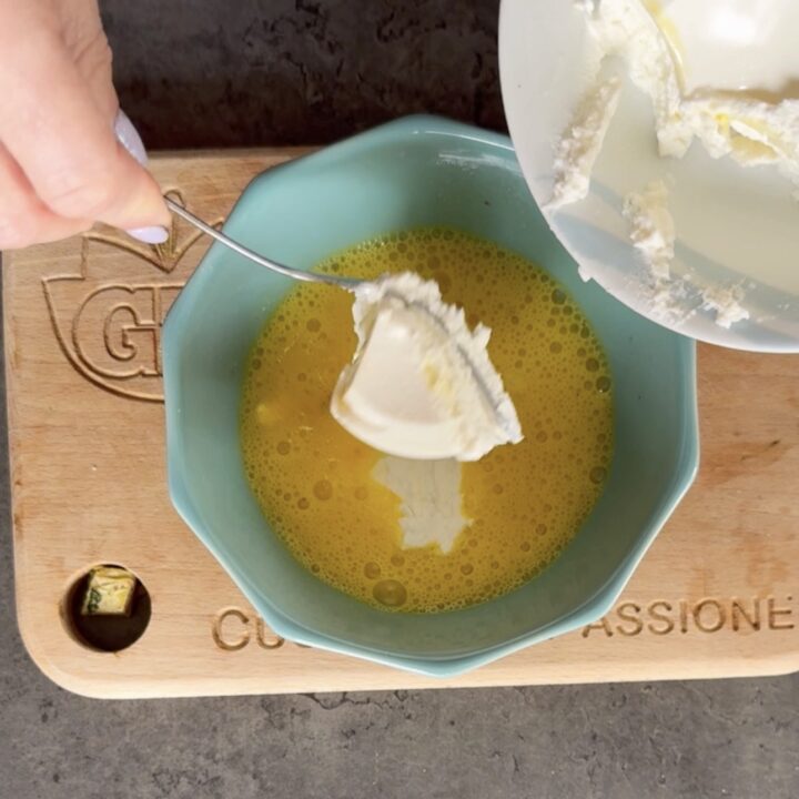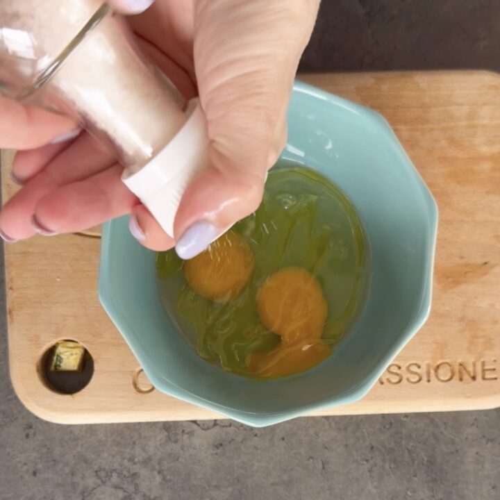 In una ciotola, versate le uova e un goccio d’olio extravergine