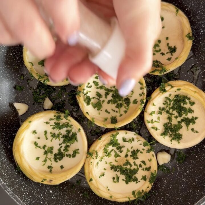 lo spicchio d’aglio tagliato a pezzetti e del prezzemolo tritato,