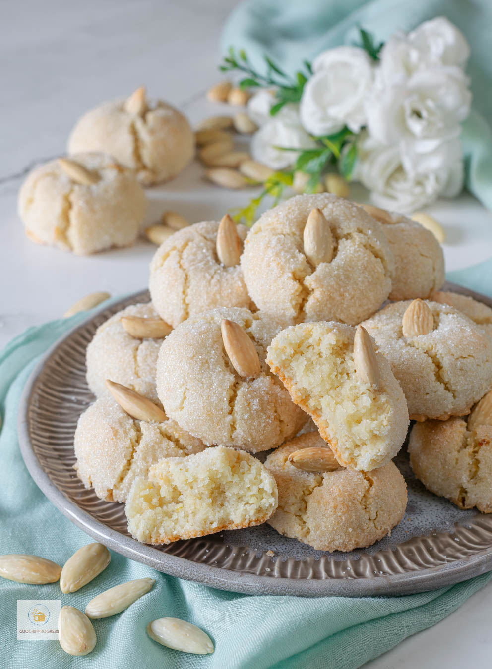 Gli amaretti sardi si conservano in un contenitore ermetico per 4–5 giorni. Mantengono fragranza e morbidezza.